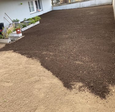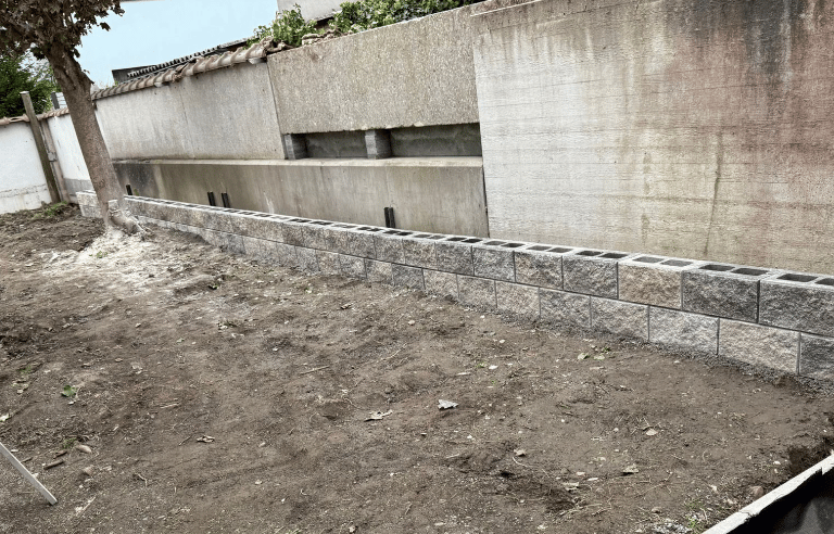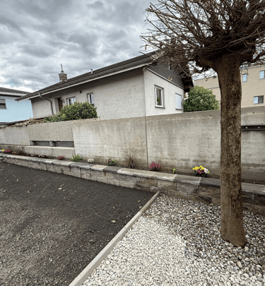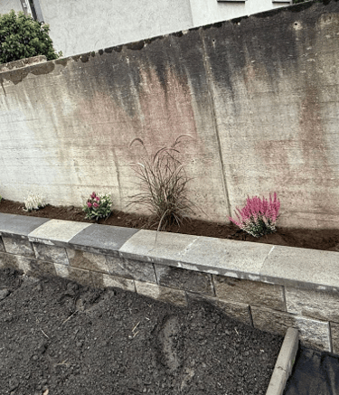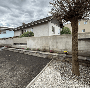 Neugestaltung mit Terrassen und Naturstein.